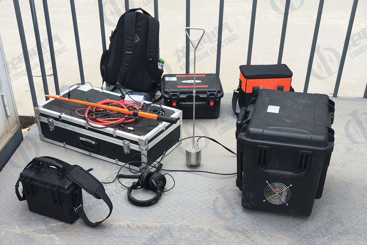4月1日到山東國家電投某光伏發(fā)電廠做電纜故障測試儀售后技術培訓。光伏發(fā)電廠負責人介紹,有5條電纜發(fā)生故障,前后也有三四家廠家過來查找故障,一直沒有找到,嚴重影響了發(fā)電任務。我公司技術員首先查看了電纜狀況,大部分都是高阻故障,有的甚至達到6 兆歐多。通過一體化電源直流燃弧、高壓閃絡沖擊故障點,聲磁同步等手段,在2米高大土堆下找到3條故障線纜,又在其他地方找到2條故障電纜,解決了該電廠的幾條頑固性的電纜故障,同時也完成了培訓任務。